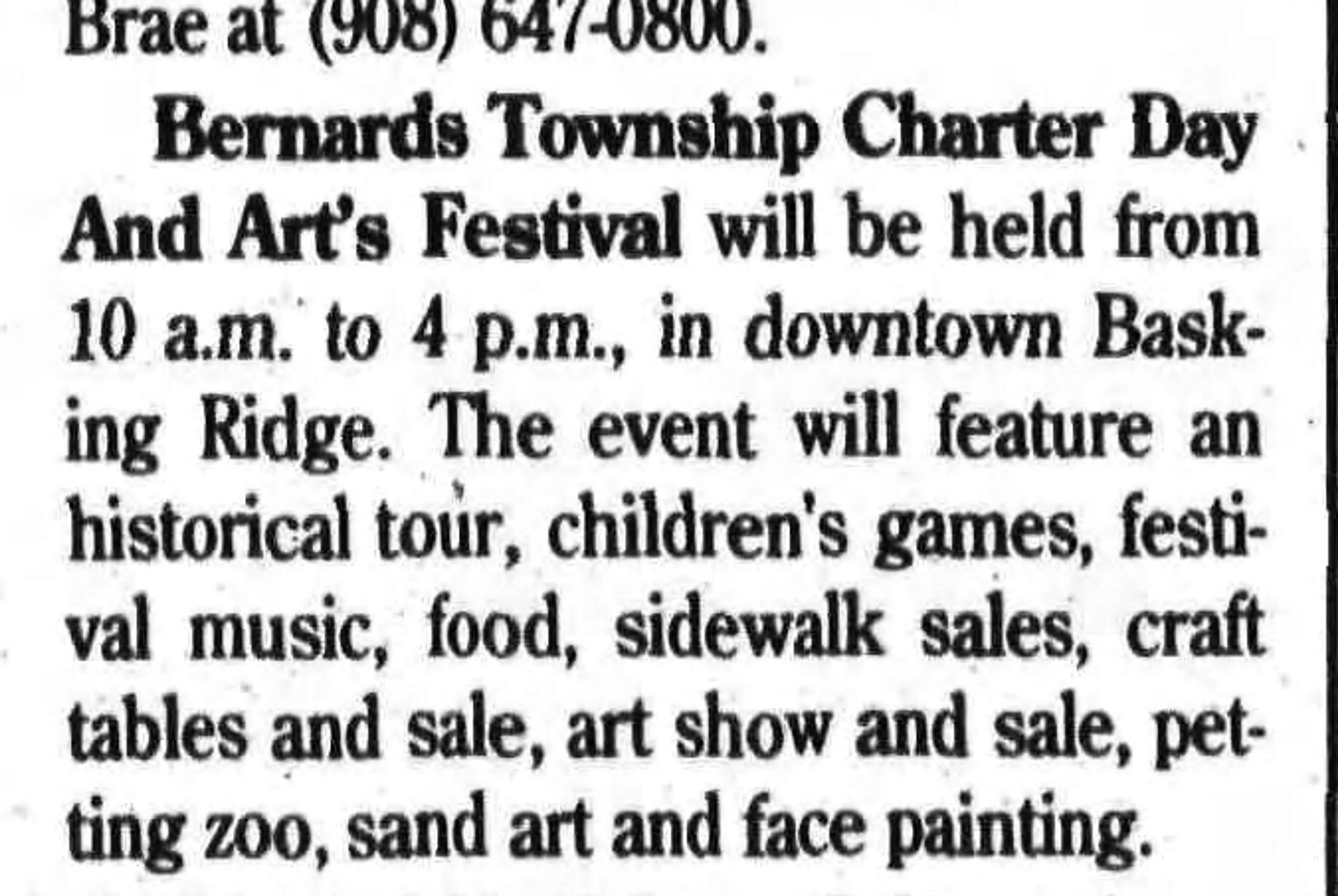 Retrospective The History Behind Bernards Township Charter Day & That , Find out what's happening in basking ridge for free with the.